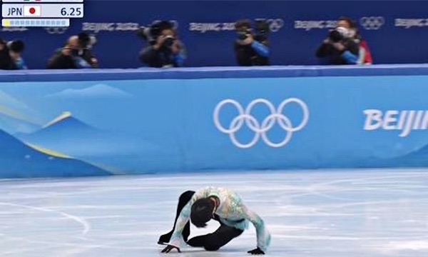 北京时间2月10日,2022年北京冬奥会花样滑冰男子自由滑比赛,两届冬奥会冠军、日本名将羽生结弦两连摔,挑战4A遗憾失败,最终获得第四名。坚持完成比赛后,羽生结弦满头大汗,深情向各方鞠躬致谢。随后,羽生结弦在离开赛场时,深深鞠躬,并弯下身来久久触摸冰面,难掩不舍,不出意外的话,这也将是他最后一届冬奥会了。【周边网】