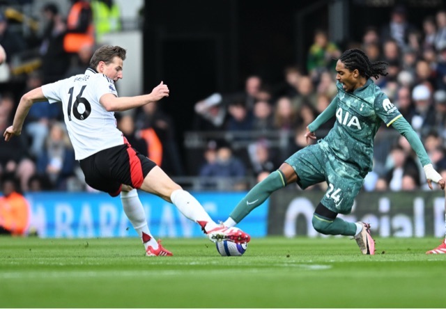 开场第4分钟,富勒姆的萨穆埃尔·丘库埃泽左路突破后助攻,肯尼·泰特禁区右路抽射,皮球变线入网,富勒姆1-0领先。第6分钟,热刺门将古列尔莫·维卡里奥出击失误,约书亚·金策动反击,哈利·威尔逊禁区外兜射空门得手,比分变为2-0。第10分钟丘库埃泽内切兜射击中立柱,第26分钟范德芬关键铲断化解其单刀,热刺半场0-2落后。【周边网】下半场热刺加强攻势,第59分钟卢卡斯·贝里瓦尔传球,穆罕默德·库杜斯禁区右侧爆射破门,比分1-2。此后热刺持续狂攻,第66分钟贝里瓦尔头球后蹭被希门尼斯门线解围,第81分钟穆阿尼脚后跟打门擦柱,多次错失扳平机会。富勒姆收缩防线稳守,第78分钟希门尼斯因手球吃到黄牌,最终将2-1比分保持至终场。