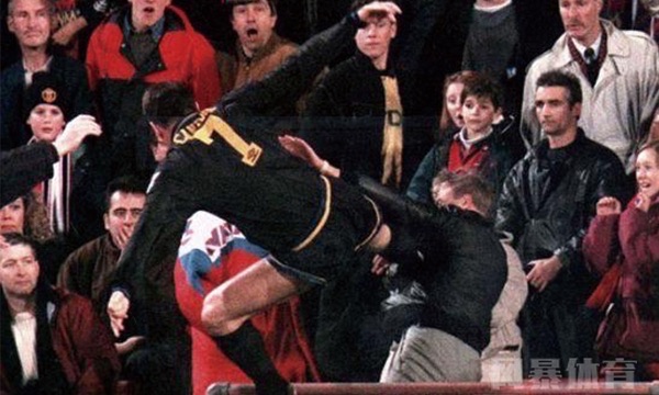 1995年1月25日,曼联1比1战平水晶宫,比赛第49分钟,坎通纳被红牌罚下,在他下场时,一名叫马修-西蒙斯的水晶宫球迷在场边疯狂辱骂坎通纳是“法国杂种”。脾气火爆的坎通纳怎么忍得了这个,飞起身一脚揣向球迷,并试图殴打对方,好在工作人员及时赶到,拉开了坎通纳。这就是著名的坎通纳飞踹球迷事件,在足球场上球员打架屡见不鲜,但球员打球迷的确非常罕见。