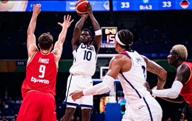 世界杯半决赛精彩一战,美国男篮第在第一节一度落后10分的情况下疯狂反扑,半场打完60-59反超1分;下半场美国队第三节被德国打出17-8攻势,并且三节打完落后10分,末节美国男篮打得十分被动,关键时刻爱德华兹和里夫斯带队看到翻盘的希望,可施罗德一传一攻稳住局面,再加上爱德华兹致命失误,最终美国队2分惜败,无缘本届世界杯决赛,更是无缘冲击队史第6个世界杯冠军。【周边网】