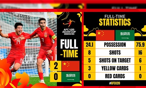 U20国足2-0击败沙特队