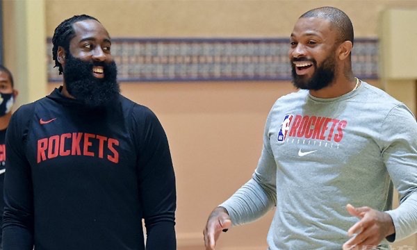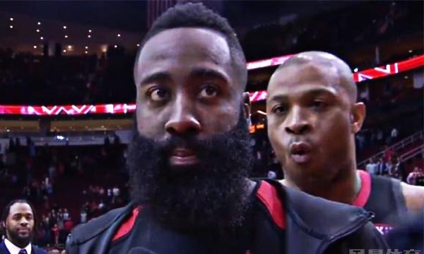 在哈登砍下43+10+12的超神数据之后,被ATSports的记者拦下做采访,结果塔克突然静悄悄地走到了哈登的身后,对着哈登的耳朵一边吐气一边勾搭哈登的左侧耳朵,瞬间引发了火箭队主场球迷的哄堂大笑,这也从侧面反映出了火箭队当时的队内气氛非常的好。回过神来的哈登还故作委屈的往后退了几步。