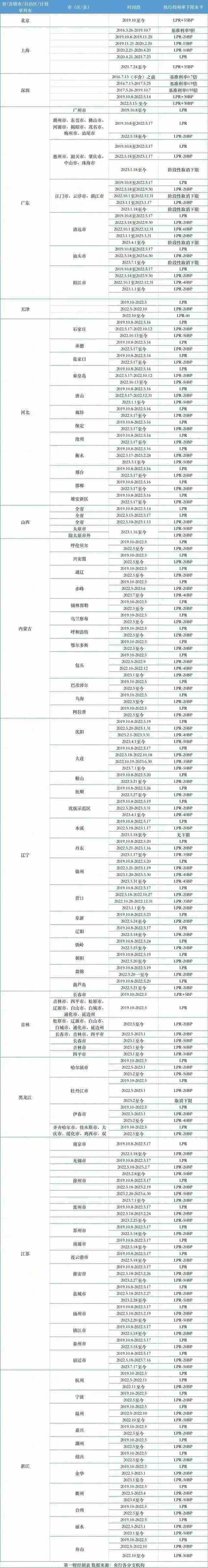 比如天津市从2022年10月份至今,利率下限是LPR-40BP,石家庄、秦皇岛、唐山从2022年10月13日至今首套房利率下限是LP2-50BP。