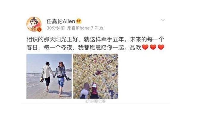 任嘉伦公布恋情