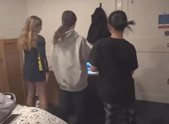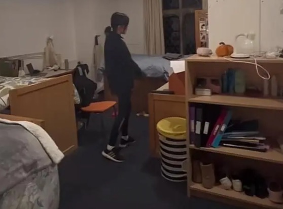 对于王诗龄的拍摄,同学们都习以为常,也没有阻止的意思,显然她与同学们相处融洽。另一边角落里,还有一个喜欢独处的女生,她也在练习跳舞,可能与学校活动有关,要不然同学们不会同时练习一种舞蹈。宿舍里的摆设简单,但是空间不小,有点类似国内的两室一厅格局,只是没有那么多墙隔断,四个人一间宿舍,这并不是王诗龄的宿舍,她只是来串门。李湘带王诗龄去英国上学,在为其办理入住宿舍手续时就透露,校方给王诗龄安排的是当年安妮公主住过的房间,虽然费用要比普通房间贵不少,但是相对于一年30多万的学费来说,简直不值一提,李湘也乐意让女儿住的舒适一些。