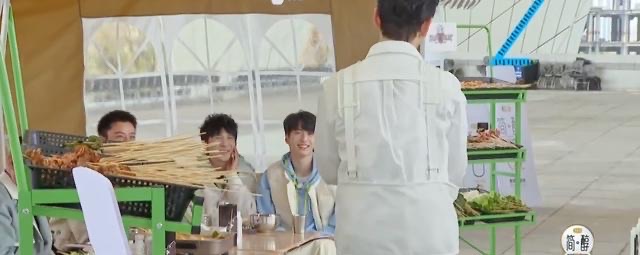 贾乃亮夸他拿的串串宛若捧花,他下一秒就以递花的姿势给了弟弟。